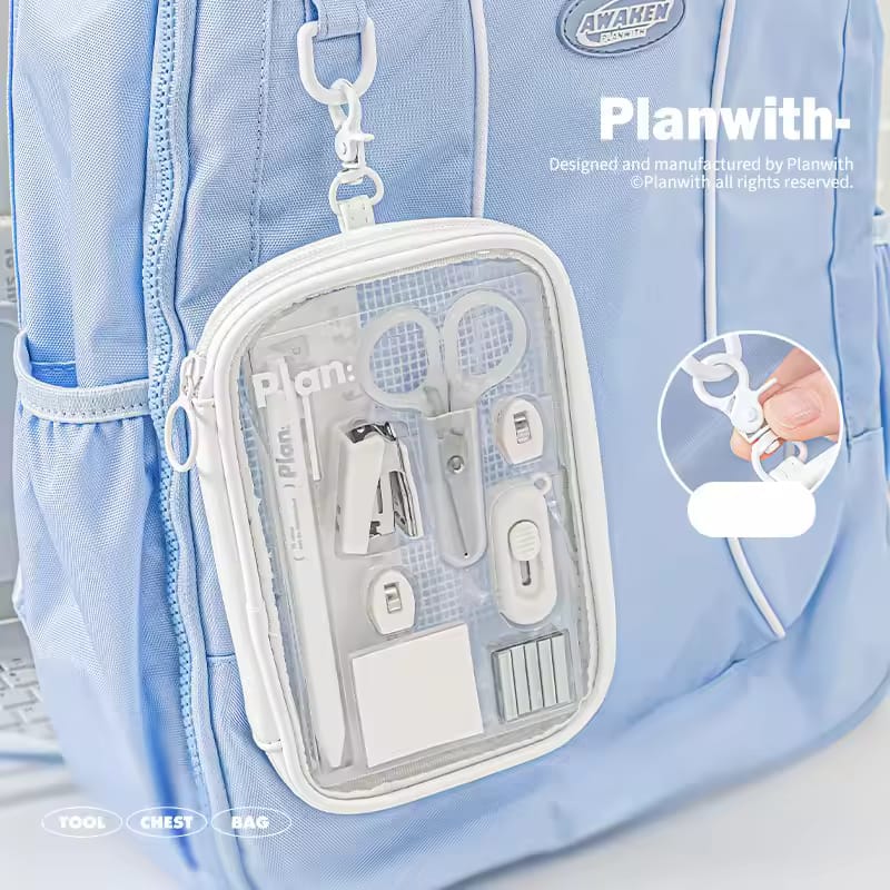 Equip students with essential tools through this thoughtfully curated 10-piece stationery collection. Featuring a refined blue and white palette, the set includes a stapler, ruler, scissors, premium pen set, and sticky notes—everything needed for academic success. Ideal for back-to-school season, this comprehensive ensemble combines practicality with understated elegance, ensuring students have reliable writing and organizational instruments at their fingertips.