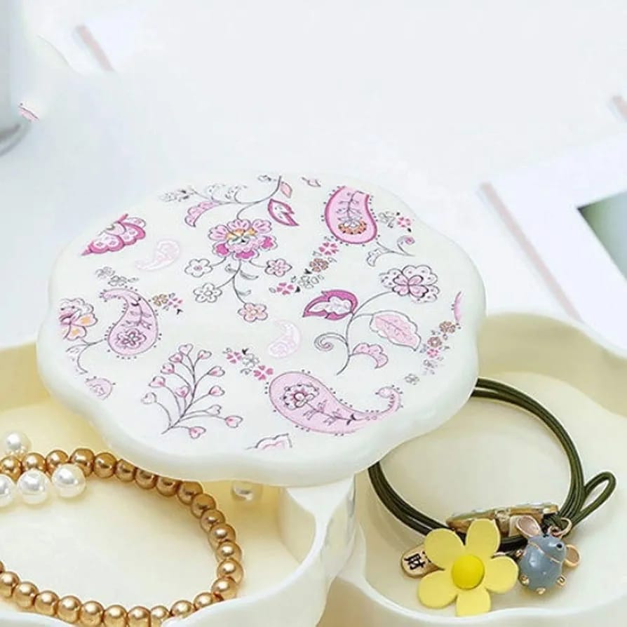 This elegant 4-tier jewelry organizer features a unique eight-petal flower design, combining style with functionality. Its 360° rotating tower allows easy access to rings, earrings, and necklaces, keeping your collection beautifully displayed and neatly stored. Crafted to enhance organization while adding a refined touch to your dressing area.