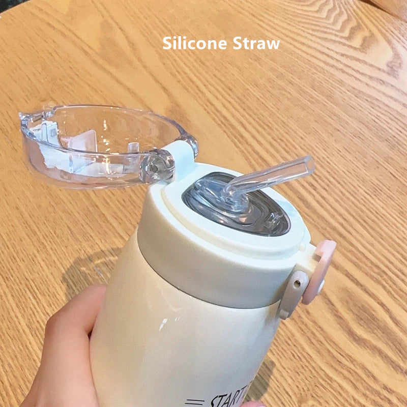 This Cartoon Cat Stainless Steel Vacuum Flask is perfect for kids on-the-go. The portable design, with straw and durable stainless steel construction, keeps drinks hot or cold for hours. With a fun cartoon cat design, this thermos mug is both functional and stylish. Choose from 350ml or 500ml sizes.