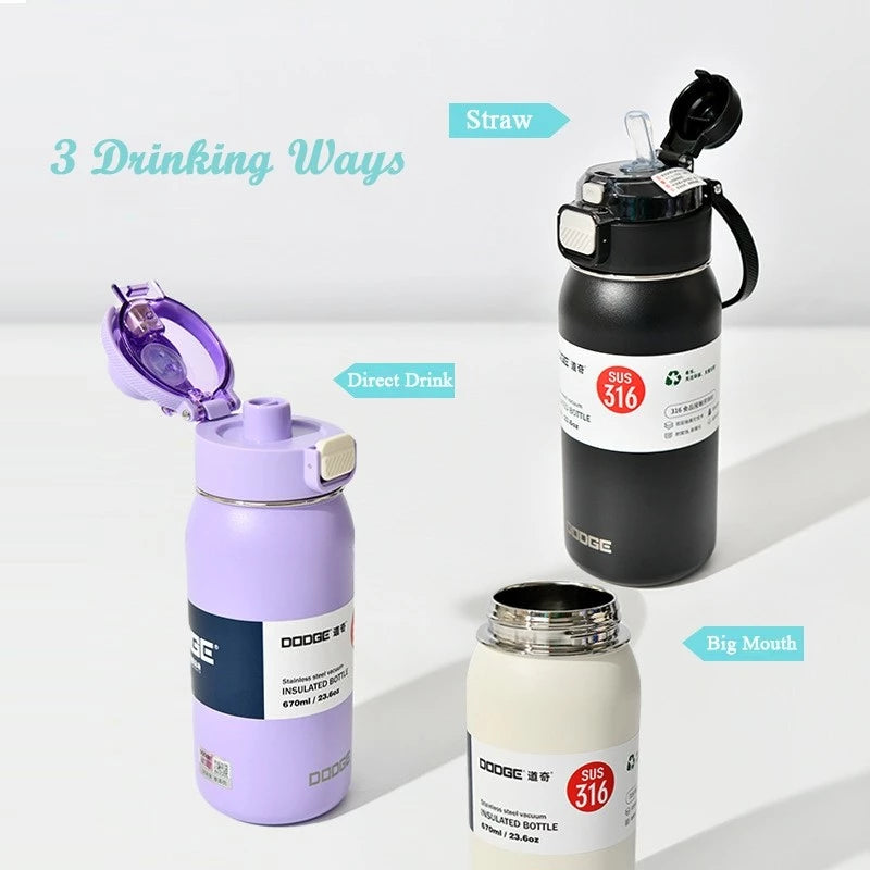 Experience luxurious and exclusive sipping with the DODGE Leisure Sport Vacuum Flask. Crafted with dual head stainless steel, this thermos bottle comes in 3 sizes (520ml/670ml/900ml) perfect for your active lifestyle. Keep your drinks hot or cold for hours and indulge in the ultimate beverage experience.