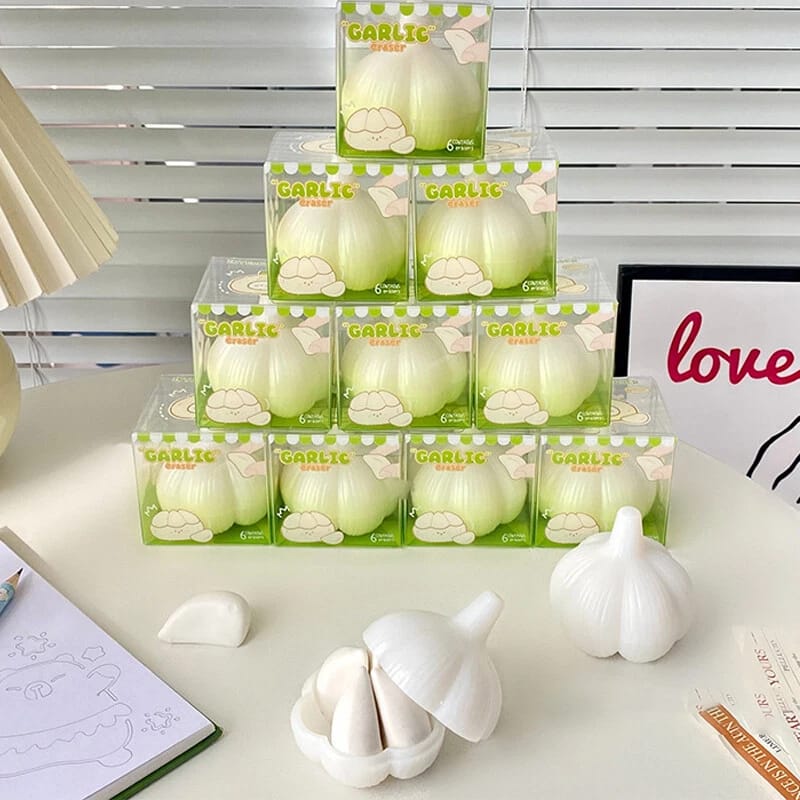 This Garlic Rubber Eraser combines functionality with a whimsical design, making it an elegant addition to any stationery collection. Perfect for precise corrections in writing and drawing, its creative shape adds a subtle touch of charm to your workspace. Ideal for those who appreciate both practicality and a refined sense of style.