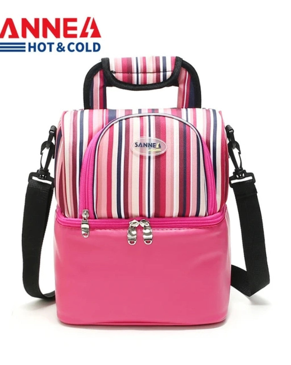 Elegant lunch bag with two layers for food and drinks. Waterproof: It has good waterproof performance and can be used for a long time. Insulated: the outer layer of the lunch bag is made of heat-resistant material, which can keep your food warm and dry.