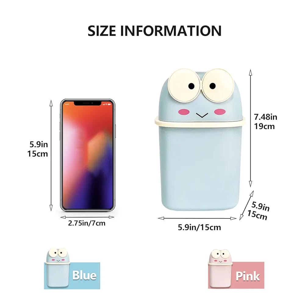 This elegant Mini Frog Trash Can in blue and pink offers a compact, durable solution for waste management. Crafted from sturdy polypropylene, it combines practicality with a playful design, making it ideal for both home and office use. Its small size fits effortlessly in tight spaces while adding a subtle pop of color.