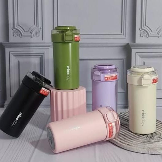 Indulge in sophisticated hydration with our Nice day insulated water, coffee& Tea Bottles. With a capacity of 410 ml and a sleek design, these bottles are perfect for any occasion. Keep your beverage at the perfect temperature for hours and elevate your daily routine.