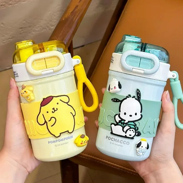 This Sanrio double-drink thermos Bottle is a stylish and convenient way to stay hydrated on the go. Made of durable stainless steel, it has a large 430ML capacity and includes a built-in straw for easy sipping. Perfect for girls and a great holiday gift option.