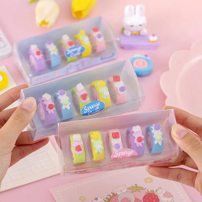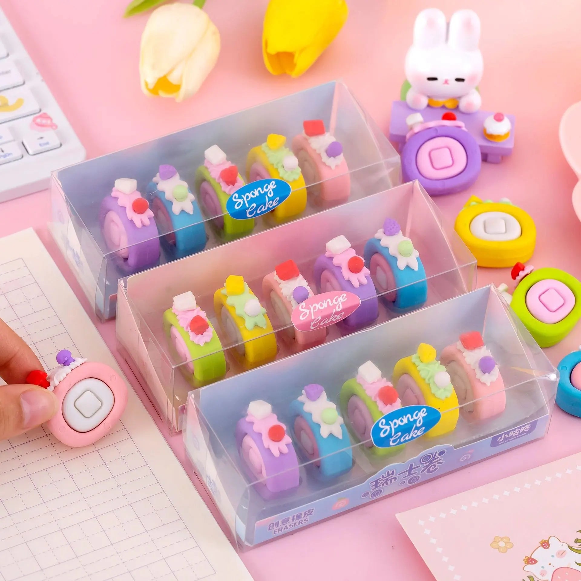 Indulge in the cuteness of this Swiss Roll Cake shaped eraser. Made for children, this Kawaii Girls eraser is not only adorable but also functional. Perfect for promotional stationery or as a reward, this rubber pencil eraser is a must-have for any young artist.
