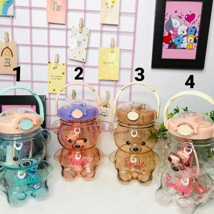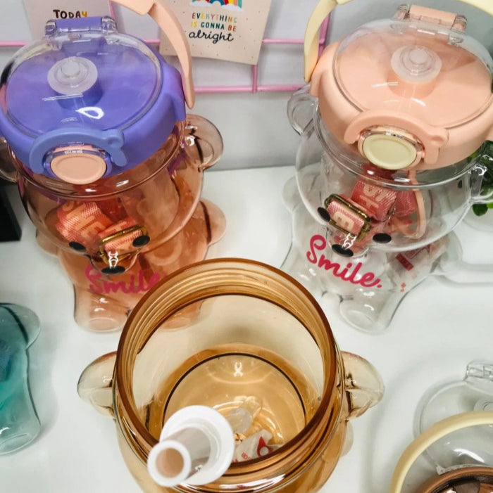 This cute water bottle is shaped like a teddy bear, making it perfect for kids. Stay hydrated and make drinking water fun with this unique and adorable water bottle.