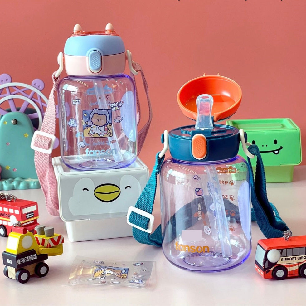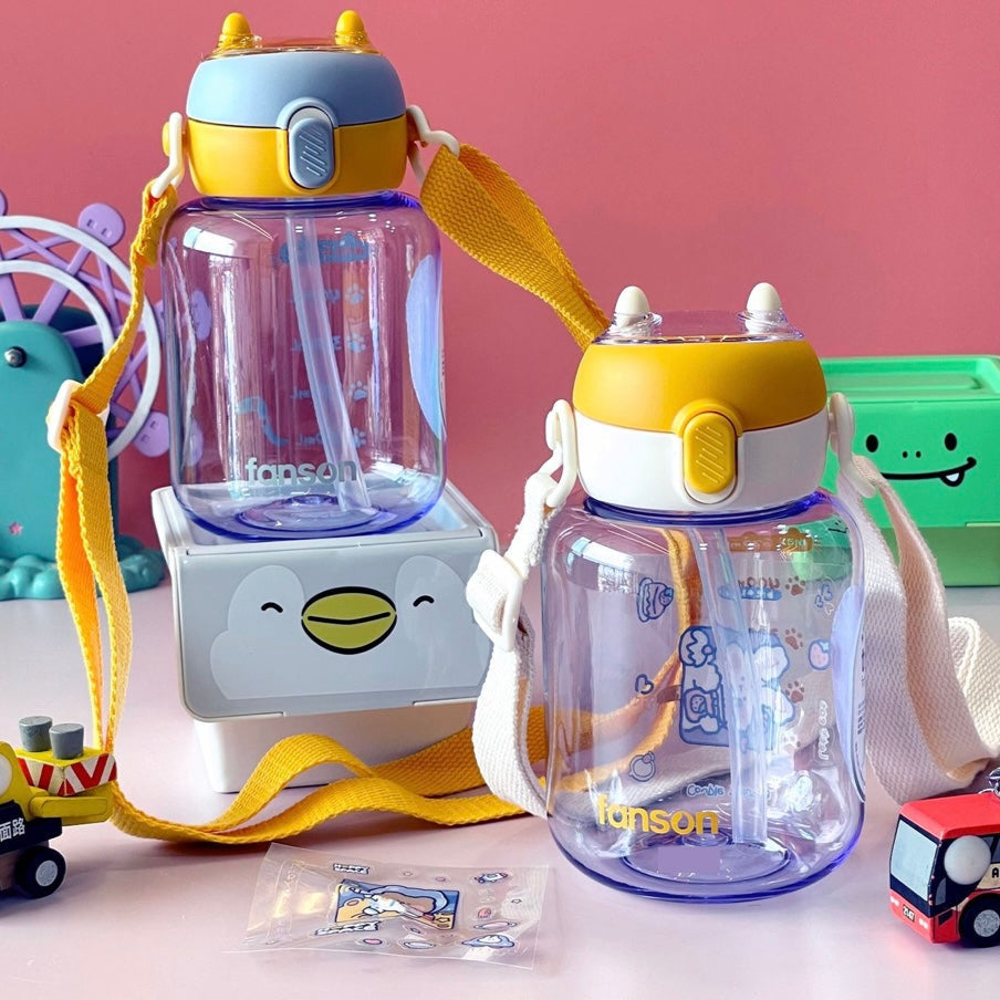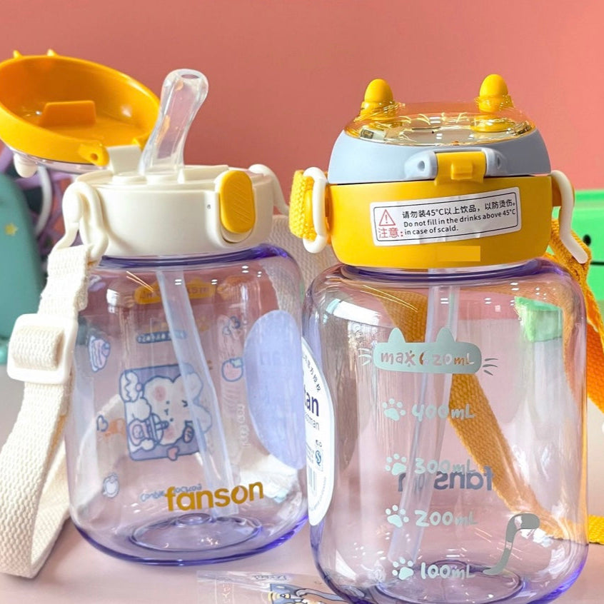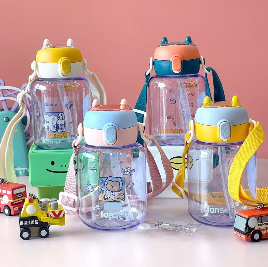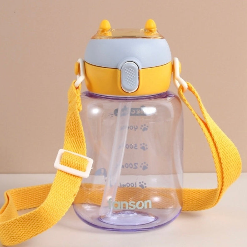 This Tritan water bottle with strap holds 600ML of liquid and is made with durable Tritan material. Perfect for staying hydrated on the go.
