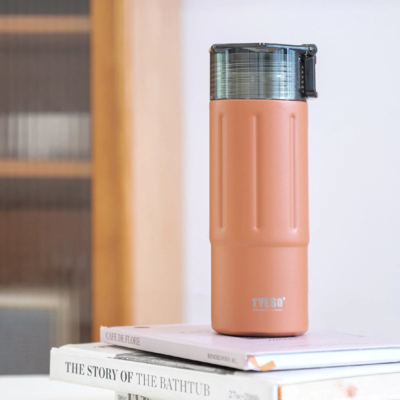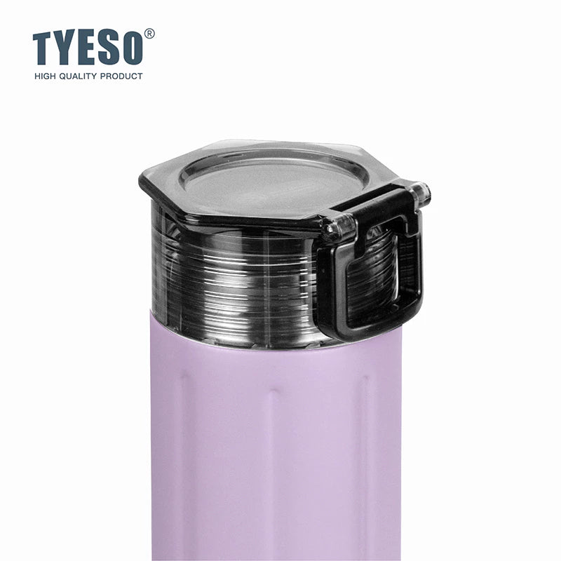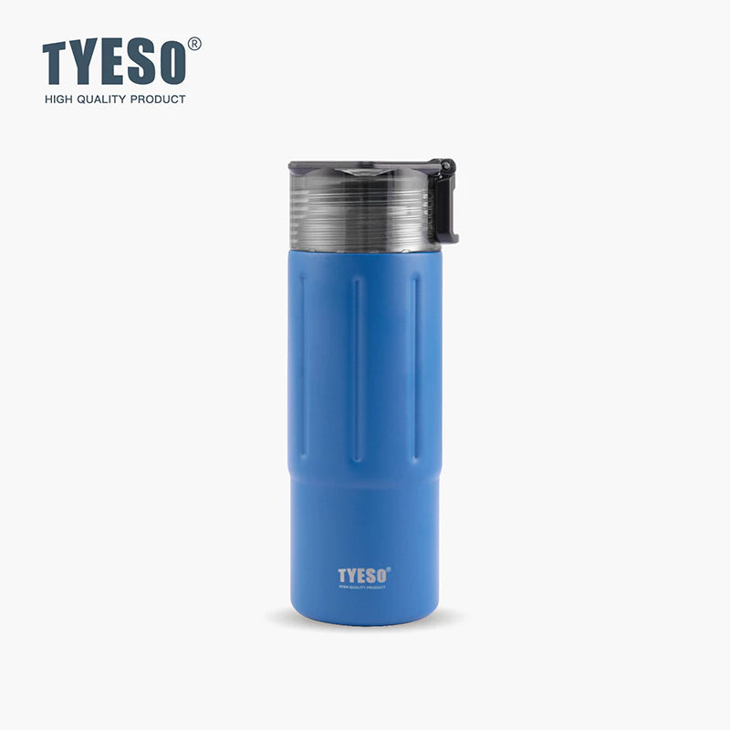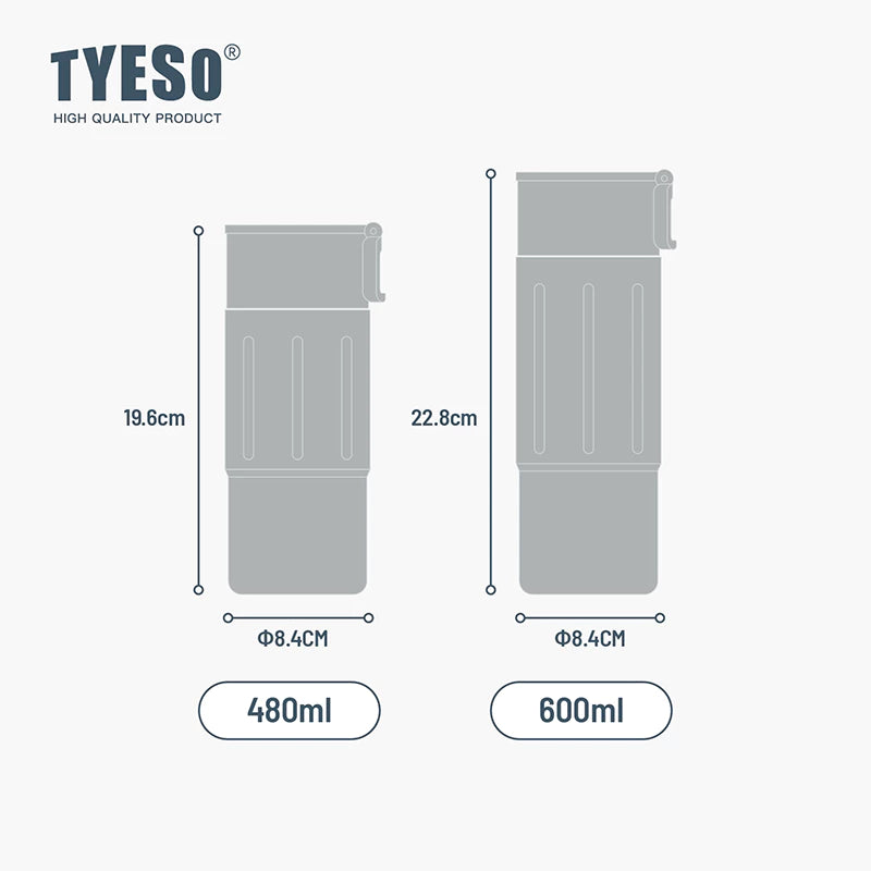 Introducing the TYESO Vacuum Insulated Bottle, your perfect companion for on-the-go hydration. Its stainless steel, double wall construction keeps drinks hot or cold for hours. With a large capacity and convenient handle, it's perfect for daily use and fits easily in your car or backpack. Available in multiple stylish colors, its dishwasher safe and even comes with a built-in tea cup lid. Stay hydrated in style with TYESO.